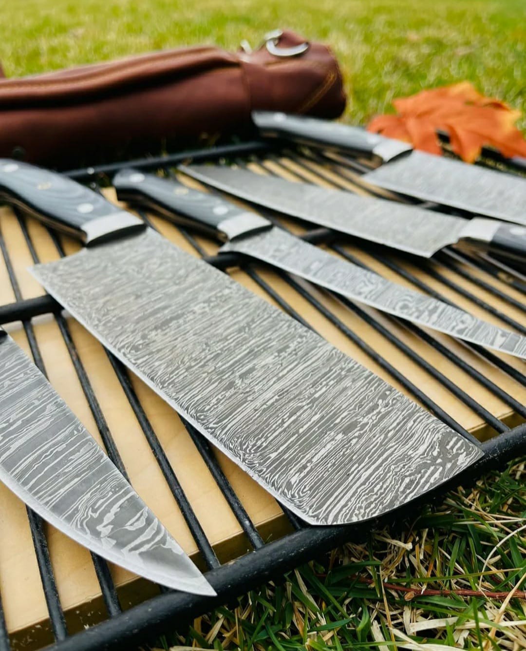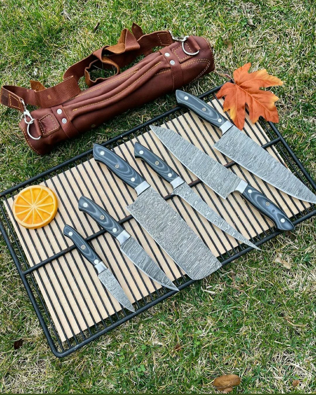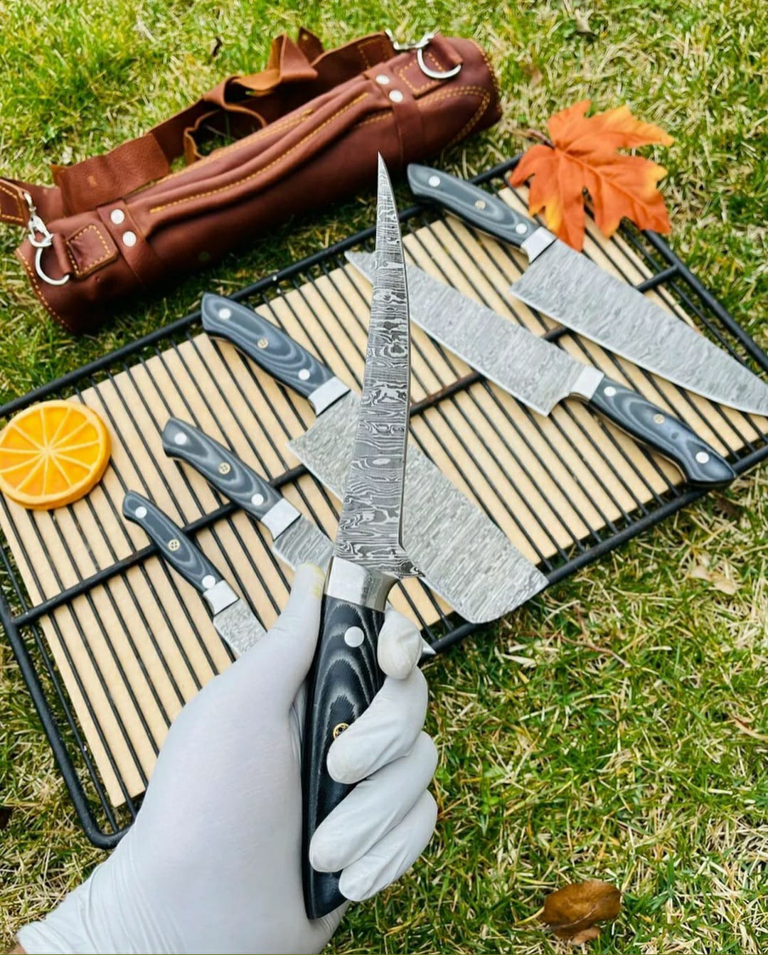 Custom Handmade 5 pieces Chef knife set with Stainless Steel powder coated Blades