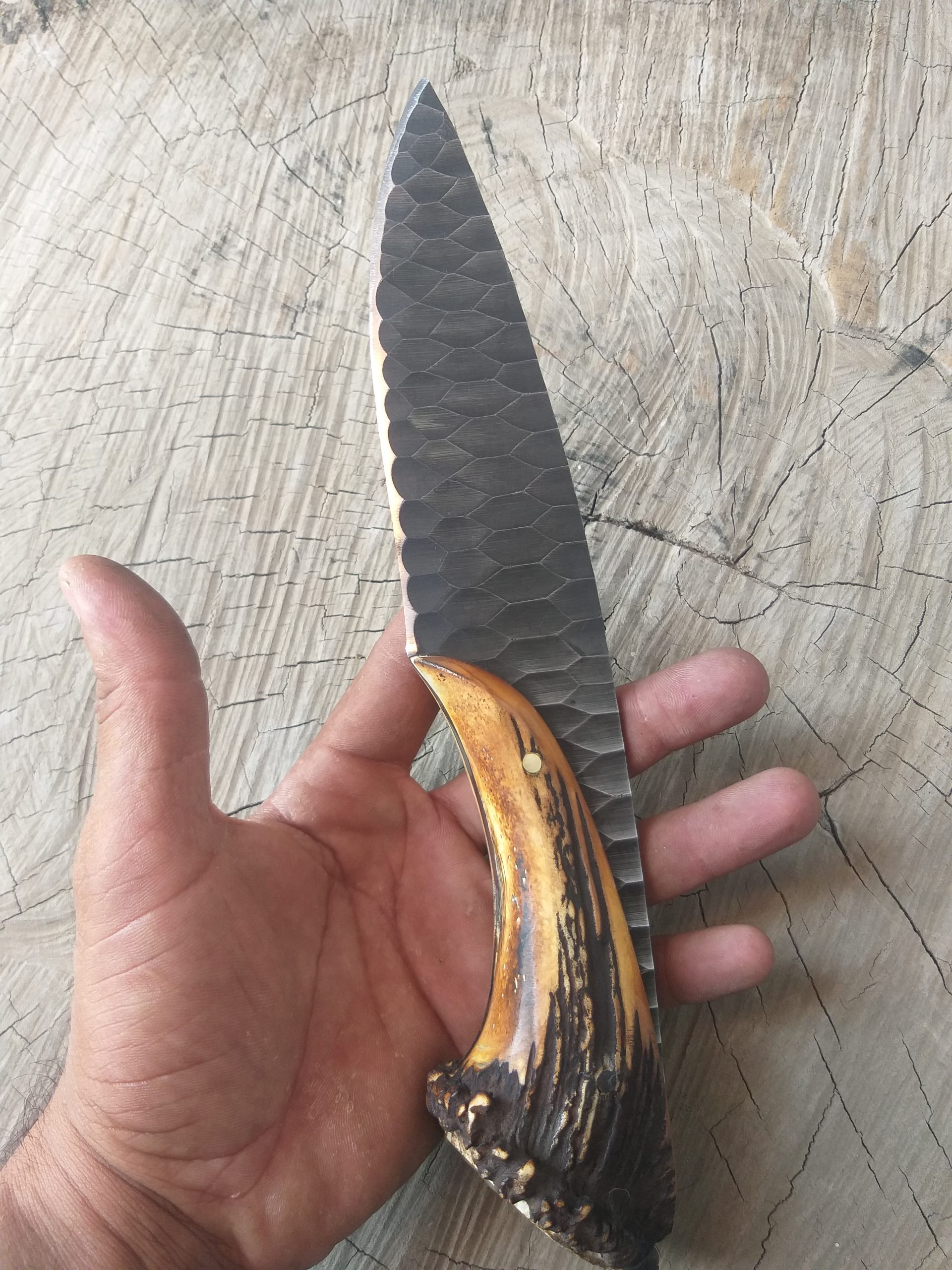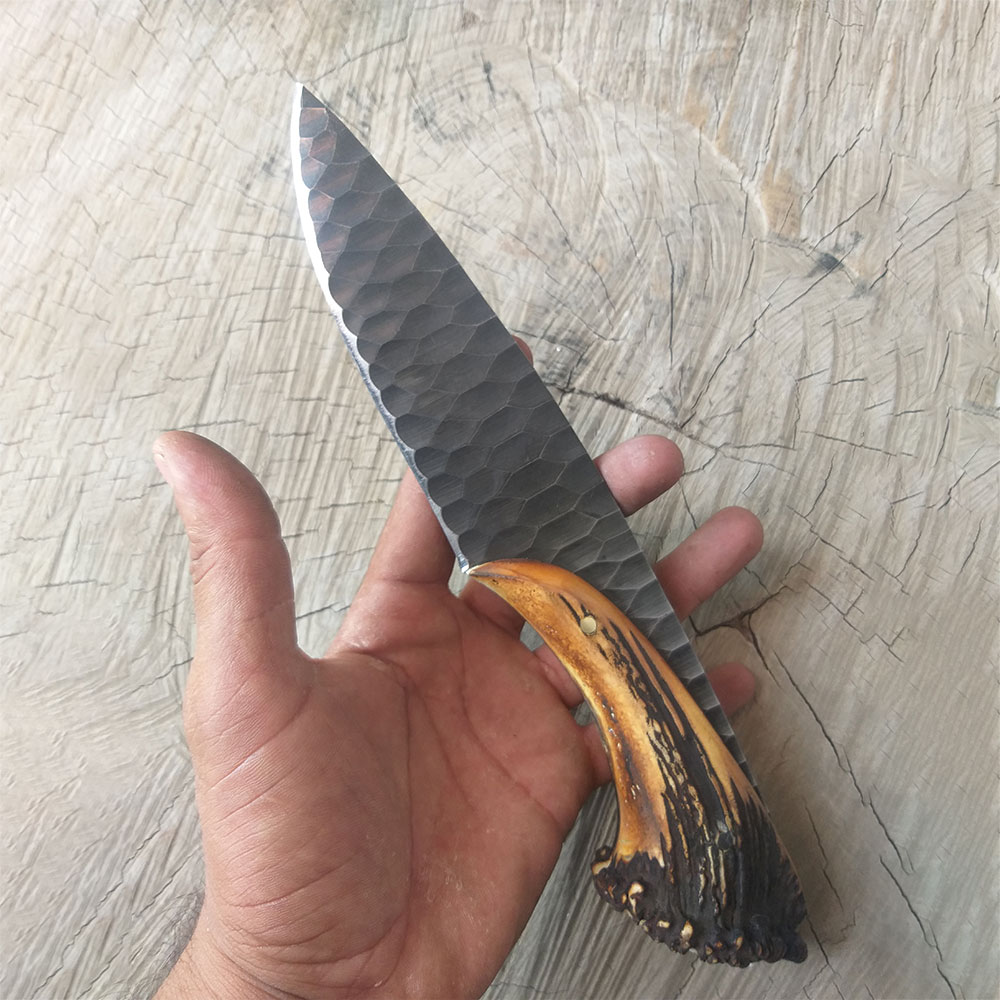 Home Skinner Custom Hand Forged hunting knife with D2 steel and Crown Stag handle