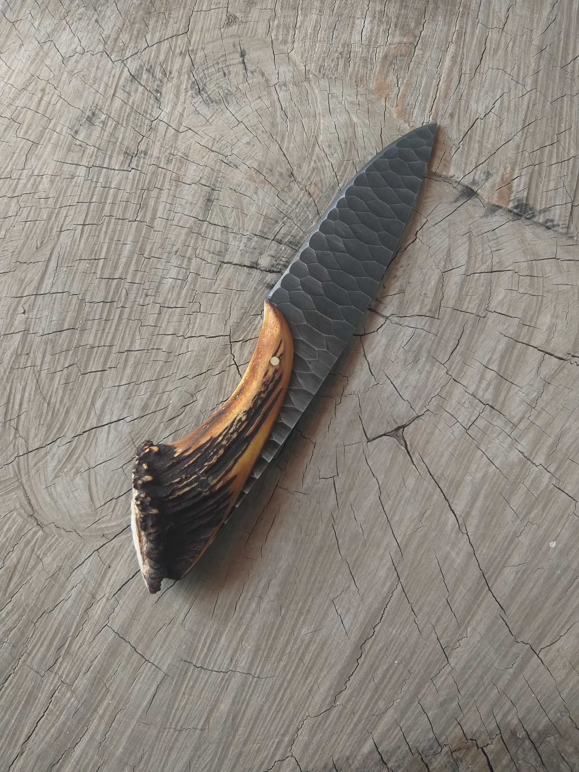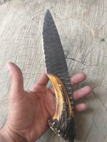 Custom hand forged hunting knife with D2 steel and Crown stag handle.