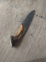 Handmade Hunting skinner knife with Damascus steel blade and Elk antler handle